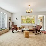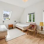 La villa dispone de una cocina completa con horno de microondas, tetera y nevera para una estancia cómoda. Los huéspedes pueden comer en el restaurante Cafe Holmen, situado a tan solo 1 km.